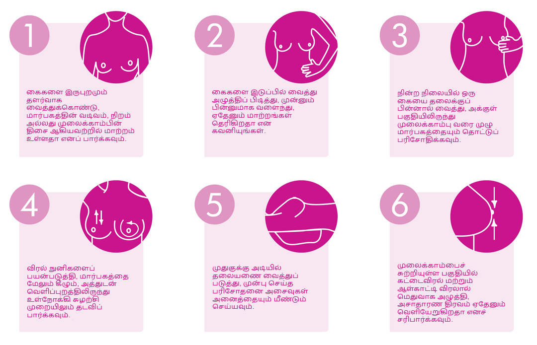 தொடர்ச்சியான சுய பரிசோதனைகள் மாற்றங்களை ஆரம்பத்திலேயே கண்டறிய உதவுகின்றன — மேலும், மார்பகப் புற்றுநோயை வெற்றிகரமாக குணப்படுத்துவதற்கும் உயிர்களைக் காப்பாற்றுவதற்கும் ஆரம்ப கட்டத்திலேயே கண்டறிவதுதான் முக்கியமாகும்.